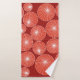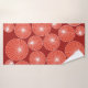 Dieses Handtuchhandtuch-Set hat ein modernes Design von roten Kreisen mit weißen Sternexplosionen in ihnen, alle auf einem Ziegelfeld.