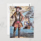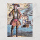 Ideal für "Talk LIke a Pirate Day" am 19. September! Auf dieser Postkarte finden Sie Vintage Kunstwerke des gefürchteten Pirat-Kapitän Black Bart mit einer Schiffsrüstung in einer Bucht.