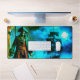 Ce tapis de bureau a un crâne effrayant pirate dessus.