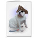 Inspiré par le fantaisie du "entretien comme un jour de pirate", cette illustration montre une image photographique d'un bouledogue anglais blanc utilisant une correction d'oeil au beurre noir et un casquette de tricorner soutenant un crâne et des os croisés.