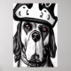 Schwarz-Weiß Piratenhund zeichne mit braunen Augen. Das ist eine künstlerische KI.