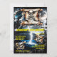 Un crâne et des os croisés sont apposés sur un parchemin ouvert roulé qui a écrit des détails sur lui pour qu'un pirate trouve des trésors noyés. Il est encadré par une tempête de foudre en mer et a jaune éditable texte modèles en dessous pour votre libellé personnalisé. Deux autres défilés crâniens apparaissent en dessous. Les tons bleus, noirs et gris de l'aquarelle ai rendent cette scène dramatique assez éffrayante et inquiétante, ce qui rend le design idéal pour un thème de pirate nautique maty ou des aventures sur la haute mer halloween fancy robe soirée thème.