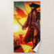 Dieses Badetuch hat einen Piraten, der darauf abgebildet ist.