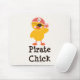 Ein niedliches Piratenküken, das einen rosa Doolappen mit einem Piratenflaggeschädel auf ihm, einem Augenflecken des dunklen Brauns und rosa Bandohrring auf lustigen Piraten-T - Shirts, T-Shirts, Knöpfen, Briefpapier, Taschentaschen und mehr Geschenken für sie trägt. Klicken Sie an die folgende Verbindung, um die ganze unseren niedlichen Chrissy H. zu sehen.