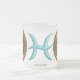 Ce mandala à thème Pisces est composé d'une pierre d'aquamarine entourée du symbole du signe, de la constellation et du symbole alchimique de l'Eau parmi les fibres et les tissages. D'autres tailles et styles de tasses sont disponibles, y compris des tasses de voyage et des steins.
