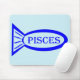 Dieses Mousepad verfügt über eine Kontur eines blauen Fisches mit hübschen Details im Inneren. Es gibt auch Text, der sagt, Pisces in der Kontur der Fische. Dieses Design ist ideal für Menschen mit Geburtstag zwischen 19. Februar und 20 März.