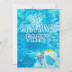 Piscine 50ème anniversaire invitation de fête avec cocktail et ballon de plage éclaboussant dans l'eau turquoise.