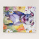 Ein digitales Kunstbild eines Grubenhundes mit seiner Zunge steht inmitten lebendiger Blume und einem bunten abstrakten Hintergrund. Helle Farbspritzen und skurrile Details schaffen eine lebendige Szene.