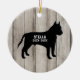 Pit Bull Rustic wood ceramic ornament with cute silhouette against falsch wood background. Personalize with your dog's name and the year. You could also use this as a memorial ornament but changing year to birth/death years. Other breeds and patterns are are available in our shop (see collection link for other breeds/colors) and let me know you cannot find your breed: info@lemontreecards.com