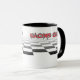 Pit Stop Racing Crew Mug - les couleurs sont blanc, noir, rouge et gris.