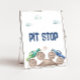 Schüren Sie die Begeisterung mit unserem Editierbaren "Pit Stopp" Monster Truck-Themenschild! Dieses Schild zeigt fett grüne und blaue Monster-LKWs in einem auffälligen Design und ist ideal, um die Lebensmittel- oder Getränkestation Ihres Party zu unterstreichen. Mit seinem lebendigen und spielerischen Stil verleiht es Ihrem Monster-Truck-Fest die perfekte Touch!