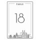 Eine elegante und dennoch minimale Hochzeitskarte für eine Tischnummer in der wunderschönen Stadt Pittsburgh, Pennsylvania. Es bietet eine vereinfachte Tischnummer, die über einer stilisierten Version der beliebten Skyline der Stadt ruht.