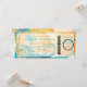 PixDezines Boarding Pass für ein tropisches Paradies, Hochzeit in Urlaubsort. Mit Grunge-Kulissen und schwebenden Palmen und Seestern. Copyright © 2011 PixDezines.com™ und PixDezines™ auf zazzle.com