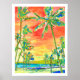 PixDezines Sunset Hawaiian Beach/Coral/Blue Poster