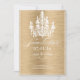 PixDezines Save the Date, weißer Kronleuchter auf gebürstetem goldfarbenem Hintergrund, der abnehmbar ist... und eine eigene Hintergrundfarbe hinzufügen... Einfach anzupassen. Wir haben auch einen Farbgenerator für Ihre Hochzeitsfeier. com