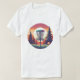 Eine Illustration eines Golfplatzes mit Korb, Kiefernbäumen und Sonnenuntergang in einem 8-Bit-Pixel-Art-Gaming-Stil.