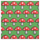 Ein Pixelkunst-Fliegenblätterpilzpilz. Der rote gepunktete Pilz ist auf einem grünen Hintergrund. Die Hintergrundfarbe kann geändert werden.