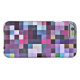 Cooles abstraktes grafisches Pixel quadriert iPhone 6 Fall. Stilvolle und mutige mehrfarbige FliesenBlockbauweise. Mischung vieler Farben mit einer Vorherrschaft von Purpur und von Blues.