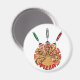 Pizza Magnet tranches sur la planche à découper et drapeau italien