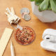 Pizza mit grünen Paprikaschoten, Oliven und Käse-Schlüsselanhänger.