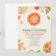 Pizza & Pacifiers baby shower pizza thème de fête avec Illustration d'une pizza pepperoni avec des illustrations de pizza, tomate, basilic, oignon, et de la pacifier tout autour.