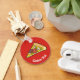 Pizza Slice Cartoon Illustration. Benutzerdefinierte Hintergrundfarbe. Benutzerdefinierter Text auf beiden Seiten.