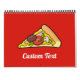 Pizza Slice Cartoon Illustration. Benutzerdefinierte Hintergrundfarbe. Eigener Text.