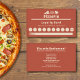 Eine Loyalitätskarte in roter Braun für Pizzeria, LKW, Zuhause-Lieferservice oder Koch zum Kochen, illustriert mit einer Pizzeria, einem Hut des Koch und einem Gebäude. Sie können sie an Ihre Kunden verteilen, um sich Loyalität zu schaffen. Diese kommen mit 9 leeren Kreisen für einen 10. freien.