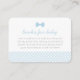 Conçu pour coordonner avec la collection de baby showers bleu en vichy design Lea Delaveris, cet encart d'invitation est parfait pour les demandes spéciales pour les clients de baby showers. Le texte "livres pour bébé" en rose sucré peut être édité, tout comme le texte de demande ci-dessous. Travaille aussi pour une tombola de couches! Il comprend également un motif bleu en vichy en bas et un motif bleu pois à l'arrière qui correspond à la cravate avant.