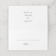 Cette carte mariage pliée en écriture moderne est parfaite pour une réception de mariage minimaliste. Le design simple en noir et blanc présente une typographie industrielle unique avec style boho moderne. Personnalisable dans n'importe quelle couleur. Gardez le design minimal et élégant, en l'état, ou personnalisez-le en ajoutant vos propres graphiques et artwork. Personnalisez le dos des cartes de lieux avec les noms de la mariée et du marié et la date. Achetez en gros et écrivez à la main les noms des invités et les numéros de table sur les cartes imprimées à leur arrivée.