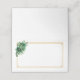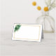 Cette carte de nom pliée est présentée dans un blanc basique avec une belle gerbe florale dans des tons de vert émeraude et des accents dorés.