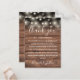 Une célébration mariage rustique merci carte de réception avec de jolies lampes à cordes sur un arrière - plan de grange en bois. Personnalisé avec votre message de remerciement spécial dans la typographie stylisée. Un gardien spécial vous remercie pour vos invités. Conçu par Thisisnotme©