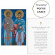 Saints Cosmas et Damian étaient des frères jumeaux arabes et des médecins de Cilicie qui fournissaient des soins médicaux gratuits, sous le nom de "les non-mercenaires". En tant que chrétiens pieux, leur pratique ouverte de la foi a conduit à leur arrestation et à leur exécution pendant la persécution chrétienne diocésaine au début du 4ème siècle. Ils sont vénérés comme saints protecteurs de la médecine, des chirurgiens et des pharmaciens. Les cartes de prière sont un beau cadeau béni pour vous donner, vos amis, votre famille et votre église.