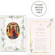 Roses roses et verdure délicates et sophistiquées entourent un cadre multi-or avec une icône de la carte de prière Joachim et Anna mariage. Une belle façon de rendre un souvenir à vos invités mariages, et un trésor de prière à garder du jour de votre mariage. Tous les textes et polices peuvent être customisés. N'hésitez pas à nous contacter pour toute question. Remarque : La plupart des icônes sont très anciennes. Si l'image est augmentée plus que nous l'avons, l'image pourrait être déformée. Nous n'imprimons, ne fabriquons ni n'expédions aucun des produits. Merci!