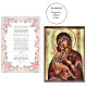 De grandes fleurs roses encadrent une carte de prière chrétienne orthodoxe de grossesse avec une icône des Theotokos et de l'Enfant Christ de l'autre côté. Customisez avec un nom personnel dans la prière ou remplacez par votre propre prière, le passage de la Bible, le poème ou le message de votre choix. N'hésitez pas à nous contacter pour toute question. Remarque : La plupart des icônes sont très anciennes. Si l'image est augmentée plus que nous l'avons, l'image pourrait être déformée. Nous n'imprimons, ne fabriquons ni n'expédions aucun des produits. Merci!