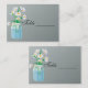 Marguerites blanches dans un bocal de mason teinté bleu.