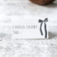 Ces cartes de table sont une belle décoration pour votre Baby Shower sur le thème "Elle noue la boucle" avec des rubans noirs gothiques.