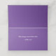 Un seul anémone violet pour un nom et un porte-numéro de table. Texte blanc sur la couleur violet à l'intérieur de la page.