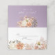 Assistez à vos invités avec élégance avec cette carte de mariage pêche et violet fleuri. Doté d'élégants roses d'aquarelle, d'une pelouse de pampas et d'un arrière - plan de lavande douce, ce design rustique-boho ajoute une touche romantique à vos tables. Personnalisez avec des noms, des dates ou des numéros de table pour correspondre à votre thème mariage.
