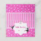 Danser Ballerina silhouette Carte de place Anniversaire, Ballerina silhouette sur un arrière - plan rose vif et fuchsia avec pois blancs et coeurs roses. En haut une belle illustration de chaussures de ballerine.