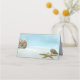 Joli thème de plage plié carte de place avec belle carte graphique d'une plage de sable blanc avec coquillages. Personnalisez le texte personnalisé, au verso de la carte, pour lire ce que vous voulez. Personnalisez l'avant de chaque carte, à la main, pour votre réception mariage ou événement.