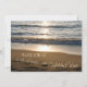 Invitations élégantes de renouvellement de voeu de mariage comportant une belle photographie des vagues se brisant sur la plage au coucher du soleil avec le texte entièrement personnalisable pour inclure vos détails de cérémonie de renouvellement de voeu.