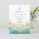 Ces invitations au baptême de plage ont un fond bordé de vagues de l'océan. Utilisez les champs modèle pour ajouter vos détails personnalisés. Commandez des cartes imprimées en ligne ou des invitations imprimables. Un choix élégant pour les thèmes océaniques. Pour voir d'autres créations comme celle-ci, visitez www.zazzle.com/dotellabelle Unique aquarelle art et design de Victoria Grigaliunas de Do Tell A Belle.