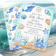 Dauphin dessiné à la main, crabe, coquillages, étoiles de mer, dollar de sable et corail bleu garçon invitations de douche bébé avec un thème de plage.