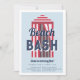 Les invitations à la fête d'anniversaire d'été pour la fête de votre petit sont accompagnées d'une illustration de cabane de plage rayée rouge et blanche avec "beach bash" en lettres rétro bleu marine et blanc. Personnalisez avec les détails de votre fête d'anniversaire sous.