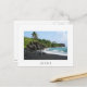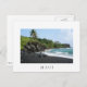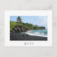 Carte postale avec une plage de sable noir volcanique dans le Parc d'état de Waianapanapa le long de la célèbre Route vers Hana sur l'île tropicale de Maui, Hawaii, aux Etats-Unis avec une bordure blanche et le texte : 'Maui'.