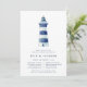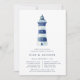 Nos invitations à dîner de répétition chic côtier comprennent une illustration d'un phare bleu et blanc à aquarelle, avec vos répétitions de cérémonie et les détails du dîner sous le lettrage bleu marine. Les invitations se retournent vers le rouge solide pour une pop de couleur d'été nautique classique.