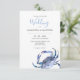 Ces invitations personnalisables à un mariage sur la plage comprennent un crabe d'aquarelle dans les tons bleus. La carte revient à une couleur complémentaire. Utilisez les champs modèle pour ajouter vos détails personnalisés. Pour voir plus d'idées faire-part de mariage visitez Do Tell A Belle sur Zazzle à www.zazzle.com/dotellabelle Unique aquarelle art et design de Victoria Grigaliunas.