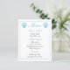 Ajoutez de l'élégance côtière à votre fête mariage avec ce menu sur le thème de la plage, conçu avec des coquillages bleus doux et des accents nautiques. Que vous soyez en bord de mer pour un dîner, une réception en bord de mer ou un mariage de destination, ce menu donne le ton d'un événement magnifiquement organisé. Customisez avec vos cours pour créer une expérience culinaire élégante et coordonnée que vos invités aimeront.