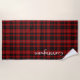 Élégante serviette de plage faite dans le classique clan écossais noir et rouge Cunningham tartan plaid motif. Personnalisez le grand texte blanc en fonction de vos besoins.